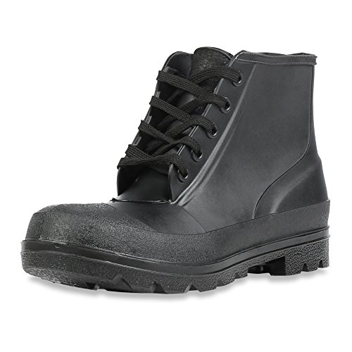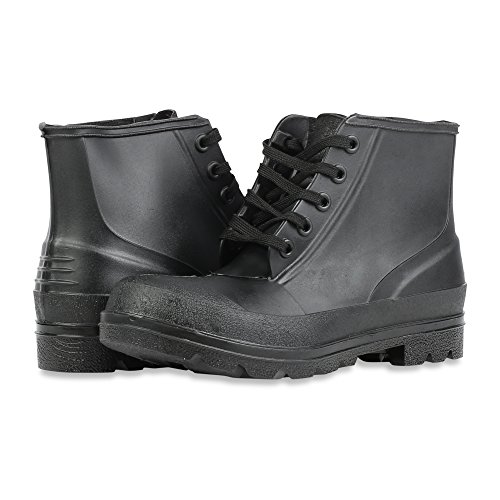 -. Feature : PVC polyblend injection molded boots are seamless and 100% waterproof yet stay flexible in cold environments; resistant to degradation from agricultural chemicals, fertilizers and animal waste / 5-eyelet design laces up for a close, secure fit; reinforced at critical stress points for longer wear / Lightweight FOOT FORM contour cushion insole provides excellent arch and heel support, and are removable and washable, and replaceable; steel shanks reinforce construction and support the arch / Deep V-Trac outsole and heel deliver added traction to prevent slips and falls; steel toe impact protection; electrical hazard rated outsole; ASTM F2413-11 M I/75 C/75 EH / Recommended use: construction, oil & gas, food processing, farming & equestrian, general purpose