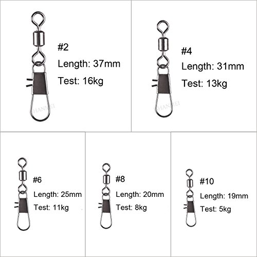 JSHANMEI 300pcs/lot Size 2,4,6,8,10 Copper & Stainless Steel Rolling Swivel Interlock Snap Lure Connectors Accessories Fishing Tackle Box