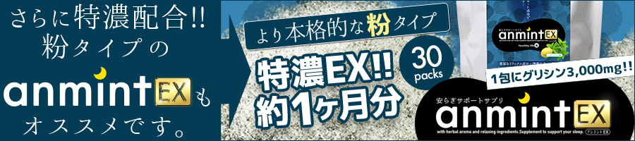 グリシン、ブドウ糖、大麦若葉、GABA(ギャバ含有米胚芽抽出エキス)、ペパーミント、ラフマ、ホップ、クロレラ、レモンバーム、カモミール、クワンソウ、バレリアン、L-バリン、L-ロイシン、L-イソロイシン、クエン酸、V.C、ナイアシン、パントテン酸Ca、V.E、V.B1、V.B2、V.B6、V.A、V.D、V.B12、葉酸、ショ糖脂肪酸エステル、香料、甘味料(スクラロース)、微粒二酸化ケイ素、L-テアニン |