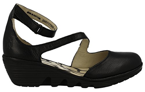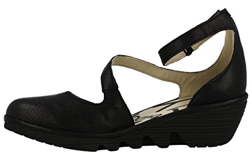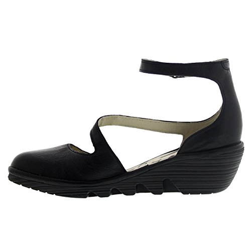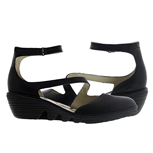 Studio : Fly London Publisher : Fly London Binding : Apparel Product Description Turn heads in the vivacious and versatile PLAN717FLY which is ankle strap, ladies wedge. This black, women's sandal features leather upper. It has hook and loop ankle strap closure finished with velcro for an easy on and off. Leather lining and lightly cushioned leather footbed are breathable and extremely comfortable in the same time. Molded wedge heel supports your ankles when walking and its rubberized, textured surface creates perfect traction. This elegant footwear sits on the wedge which reaches 2 inches at the heel. 0