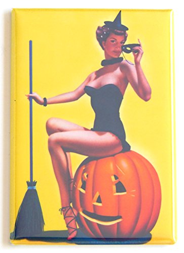 Halloween "Sexy Witch on a Pumpkin" Fridge Magnet (2.5 x 3.5 inches)
