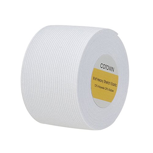 COTOWIN 2-Inch White Knit Heavy Stretch High Elasticity Elastic Band 5 Yards