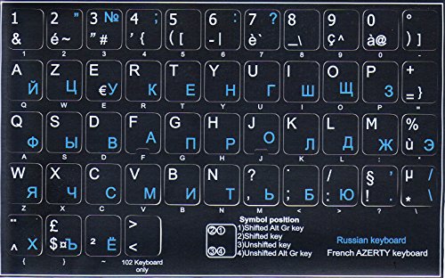 RUSSIAN FRENCH AZERTY BLACK KEYBOARD STICKER NON TRANSPARENT FOR ANY COMPUTER LAPTOPS NOTEBOOK