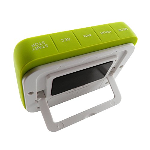-. Feature : This is a digital timer which is ideal for use in the kitchen for timing cooking, baking, gym or study. / Soft and smooth silicon control button provide a comfortable touch. / A magnet on the back ot the timer, it can be attached to the front of a fridge or fridge freezer. There is also a small stand which can be pulled out if you wish to stand this up. / Not only it counts down and up time, it also works as a regular clock. (switching to clock mode DOES NOT stop the timer) / Operated by one AAAA battery which is not included.
