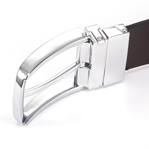 - Title : KS Men's Black Leather Dress Silver Buckle Reversible Belt + Hole Punch KB059