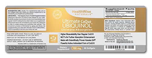 - Feature : ✔ 100% NATURAL SCIENTIFICALLY PROVEN SOURCE OF UBIQUINOL - Ultimate CoQ10 UBIQUINOL is made with Kaneka QH Ubiquinol®. Kaneka spent more than a decade testing and researching this ground breaking, more absorbable, active form of CoQ10 derived from Kaneka Q10©. Kaneka Q10© is the only 100% pure natural CoQ10 made in the USA with none of the impurities that synthetically processed CoQ10 contains. / ✔100% CUSTOMER SATISFACTION GUARANTEE - HealthWise Naturals provides the ultimate in customer service, and your satisfaction is our priority. We feel so strong about the quality of Ultimate CoQ10 UBIQUINOL that we back each bottle with a 100% money-back guarantee. / ✔PROVIDES OUTSTANDING HEALTH BENEFITS - Ultimate CoQ10 UBIQUINOL enhances your cell's ability to generate ENERGY to power all your organs. A supreme HEART supplement, it promotes CARDIOVASCULAR health, normal BLOOD PRESSURE and improved CIRCULATION. Loaded with powerful ANTIOXIDANTs, it is a superior ANTI-AGING supplement. It helps maintain your BRAIN functioning thus preserving mental clarity. While supporting optimal GUM and oral health, it is also helpful with neurological, immune system, liver, kidney and many other diseases/conditions. You are purchasing the ultimate in an OVERALL HEALTH supplement. / ✔UBIQUINOL: THE SUPERIOR FORM OF COQ10 SUPPLEMENTATION - When you supplement your diet with Ultimate CoQ10 UBIQUINOL, CoQ10 is already in the form most utilized by your cells whereas regular CoQ10 (ubiquinone) has to be converted by your body into Ubiquinol in order to create energy and neutralize free radicals. Ubiquinol is both fat and water soluble whereas ubiquinone is only fat soluble so it needs to be taken in the presence of fat. Scientific studies confirm Ubiquinol to be more bioavailable than regular CoQ10 ubiquinone. / ★WHY CHOOSE ULTIMATE COQ10 UBIQUINOL - 1) Ultimate ABSORPTION: More bioavailable than regular CoQ10, it contains medium chain triglycerides for further absorption enhancement and is delivered in rapid release liquid softgels. Over 4X more effective than regular CoQ10 ubiquinone. 2) AFFORDABLE: Being over 4X more effective, our 100mg softgel offers more value than 200mg, 300mg or 400mg of regular CoQ10. 3) POTENCY: These easy to swallow softgels contain a guaranteed 100% Ubiquinol content due to a patented stabilization process and extra ubiquinol added to each capsule. 4) PURITY: Made in the USA in a GMP certified facility using solvent-free, no heat, cold compression technology. It does NOT contain preservatives, artificial flavors, synthetic colors, stearates, sulfates, silicon dioxide, titanium dioxide, polysorbates, or caramel coloring. No side effects. ORDER NOW WITH CONFIDENCE THAT YOU ARE PURCHASING THE ULTIMATE IN COQ10 SUPPLEMENTATION.