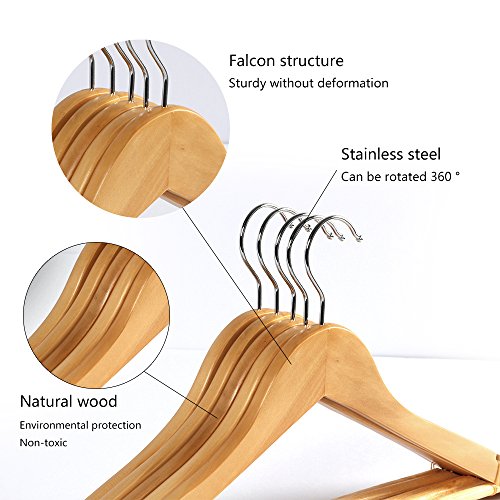 -. Binding : Kitchen -. Brand : Koyen -. Feature : Solid wood construction to hold your heaviest clothes.Designed with a chrome swivel hook / Precisely cut notches on each end allow for hanging straps / Product Dimensions: 17.4 x 0.5 x 9.4 inches (LxWxH) / OLID WOOD & STYLISH: This set of coat hangers is made of durable nature solid wood, smooth surface and natural finish well protect your clothes, lightweight and stylish design / ON-SLIP DESIGN: Thoughtful human shoulder design with 2 U-shape notches helps to avoid clothes slipping, also allows for hanging straps.HANGING BAR: Designed with a hanging bar allows hanging your pants scarves ties and more -. IsAutographed : 0 -. Label : Koyen -. Manufacturer : Koyen -. ProductGroup : Home -. ProductTypeName : HOME -. Publisher : Koyen -. Studio : Koyen -. Title : Natural wood hangers Solid Wood Clothes Hangers Coat Hanger Wooden Hangers