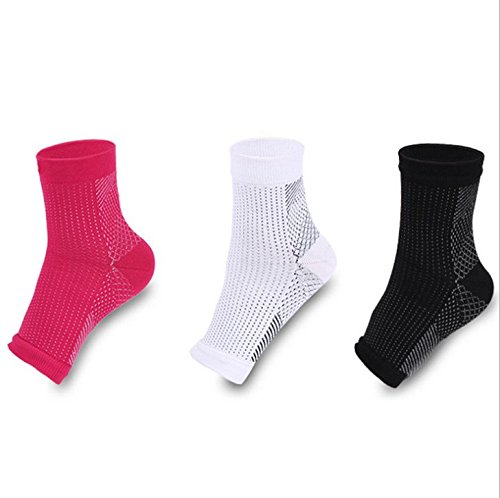 - Amazing design - preferred by trainers everywhere for anyone suffering from troubling Plantar Fasciitis, Ankle, Spurs Pain. The ankle brace sock support features compression on the bottom of the sleeve - helping relive plantar fasciitis pain by compressing the plantar fascia ligament. Its thin design allows to be worn all day or night to help relieve fasciitis feet pain. Edema Treatment or Heel Spurs creating speedy recovery & blood circulation