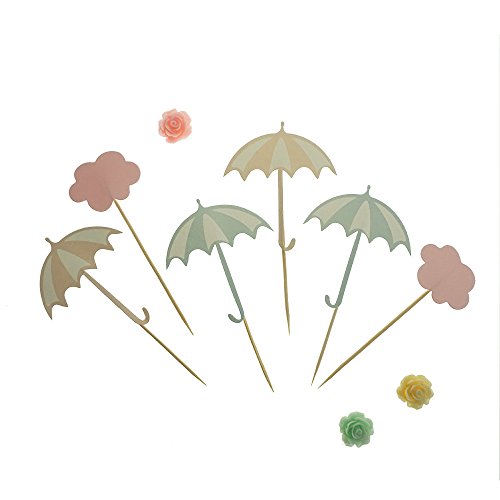 Umbrella and Cloud Cake Cupcake Toppers Picks for Wedding Birthday Baby Shower Party Decorations Supplies, Pack of 24 by GOCROWN