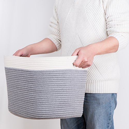 LoongBaby Large Cotton Rope Handle Storage Basket, Laundry Basket, Storage For Kids Toys Or Potted Plants (MS002-1)