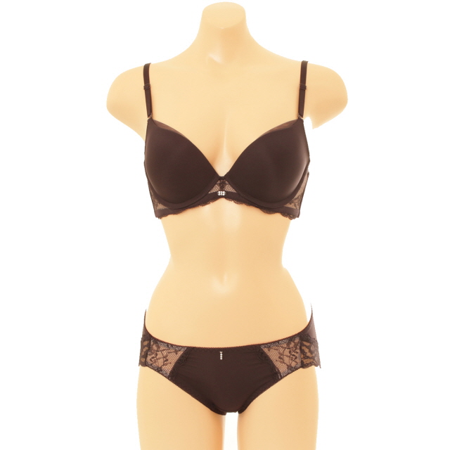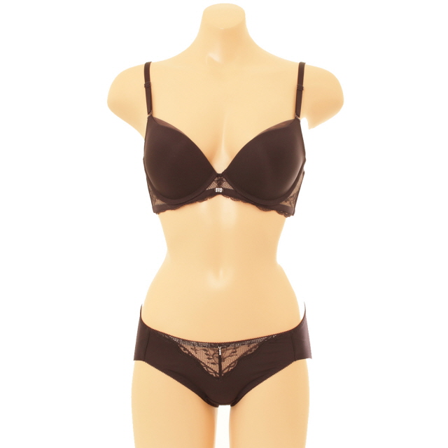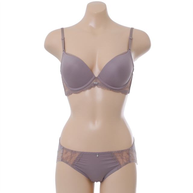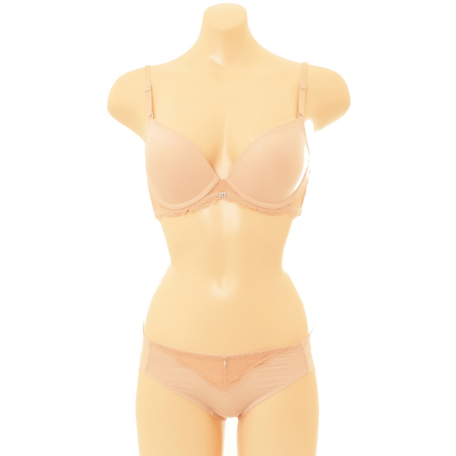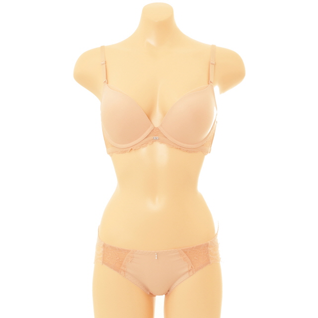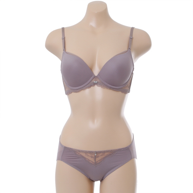 브라는 컵은 원단 몰드로 심플하게, 앞판은 섬세한 자가드 레이스로
