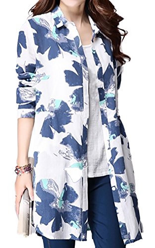 -. Title : cousa 花柄 長袖 綿 コットン レディース ロング ボタン ブラウス 長袖 シャツ チュニック ワンピース 春 夏 秋