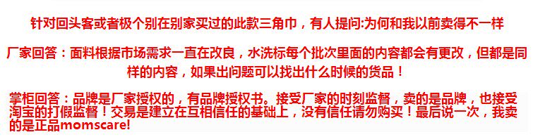 因很多客人反映和建议我们三角巾加长2cm会更好,两边都加长了1cm,现在周长是40-41CM, 有可能一包三条有些长点。介意的勿拍哦~~