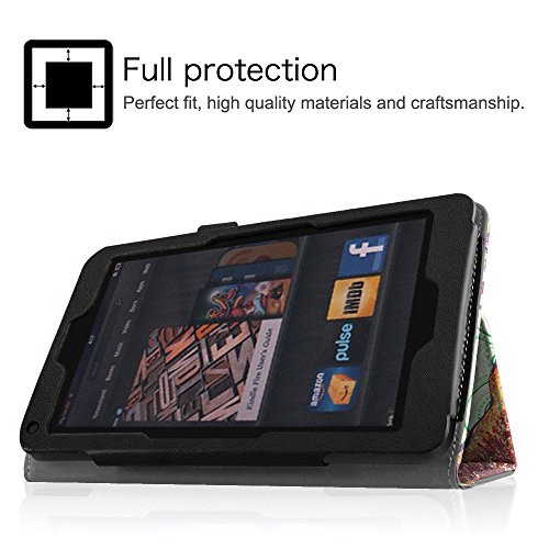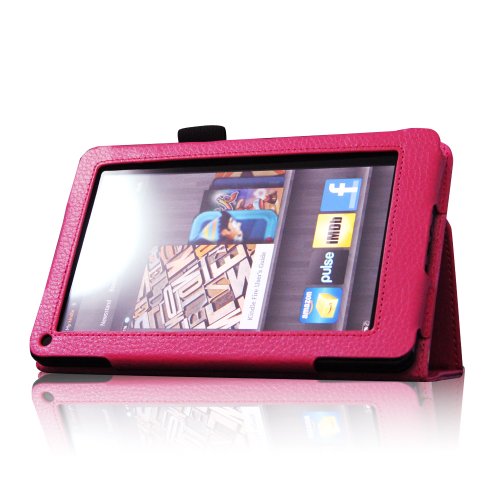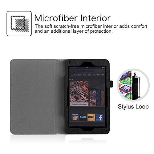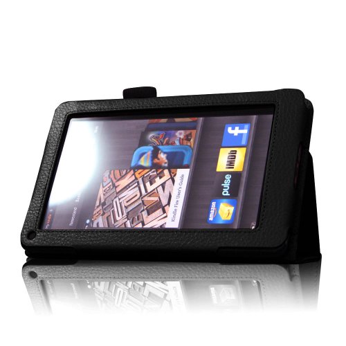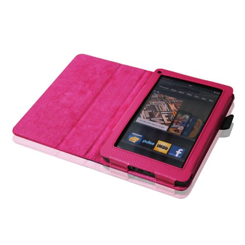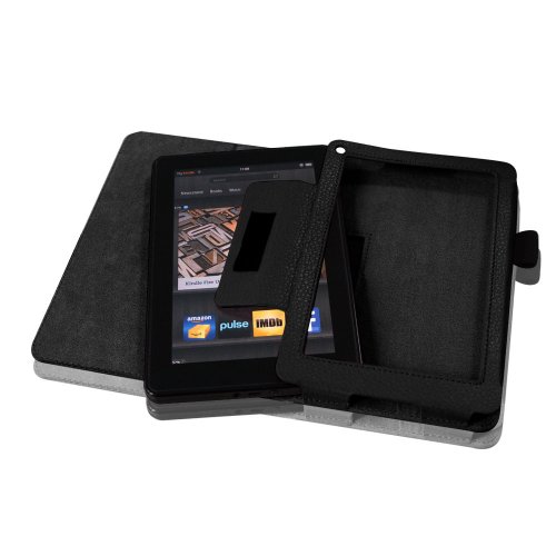 [Description] Made from durable synthetic leather with soft interior to prevent scratches. Specifically designed for the Kindle fire 7 inch Tablet Cover has flip capability to transform the case into a horizontal viewing stand Open interior pocket for easy insertion of Kindle Fire and velcro flap to secure it in place Designed with a smart holder for stylus/pen All tablet features are accessible through cut-outs and openings Cover contains flip capability to transform the case into a horizontal viewing stand Interior pocket opens for easy insertion of your device and includes hook and loop fastener flap to secure it in place Designed with a smart holder for stylus/pen (stylus NOT included)