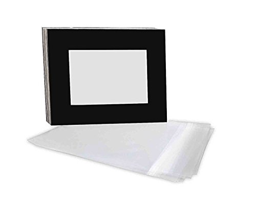 Golden State Art, Pack of 25 Black 8x10 Slip-in Pre-adhesive Photo Mat for 5x7 picture with backing board pre-assembled, Includes 25 clear bags