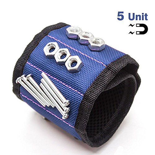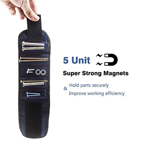 DIY Magnet Wristband Tool Belt ,WDK Magnetic Wristband with 5 Powerful Magnets for Holding Tools, Screws, Nails. With Adjustable Velcro Strap (Blue)