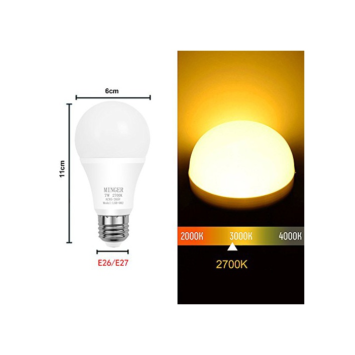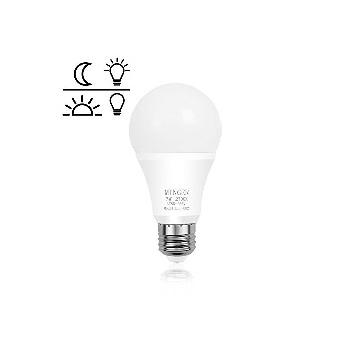 Minger LED전구 빛 센서부 상야등 7W/백열전구50W 형상당 600lm 물림쇠E26/E27 자동 점등/소등 전구색