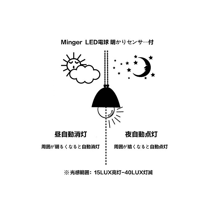 원본상품명: Minger LED電球 明かりセンサ付 常夜 7W/白熱電球50W形相 600lm 口金E26/E27 自動点/消 電球色