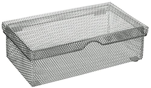 - Hinged, lidded boxes made of our famous, dust-defying mesh hide even the messiest collections of junk.