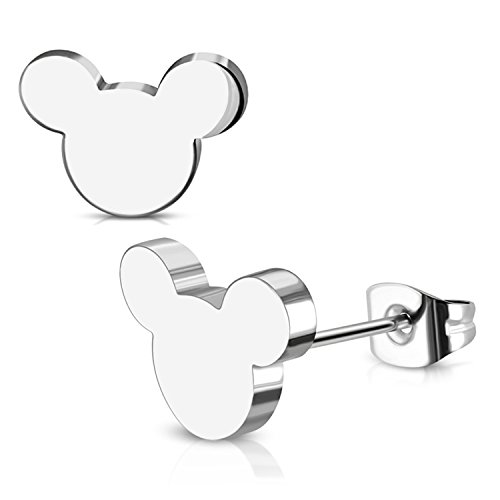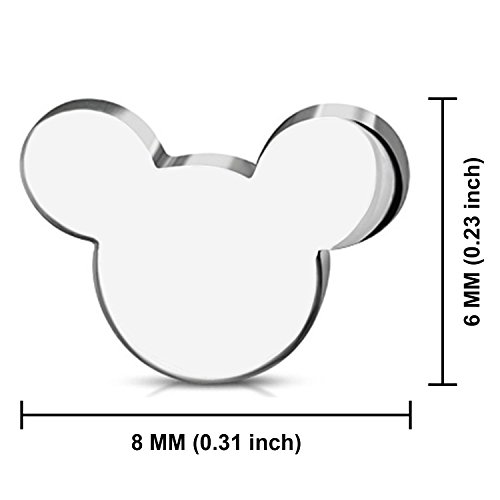 -. Feature : Mouse Head Dimension: 6 MM (0.23 inch) x 8 MM (0.31 inch) / 316L Surgical Grade Stainless Steel / Mouse Head Silhouette Design / Button Style Studs / Friction Post/Tension Back Closure