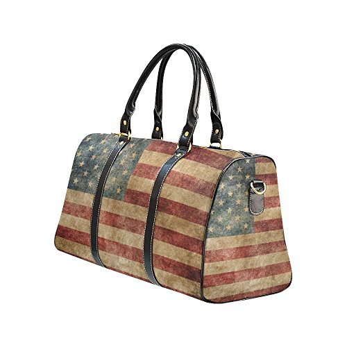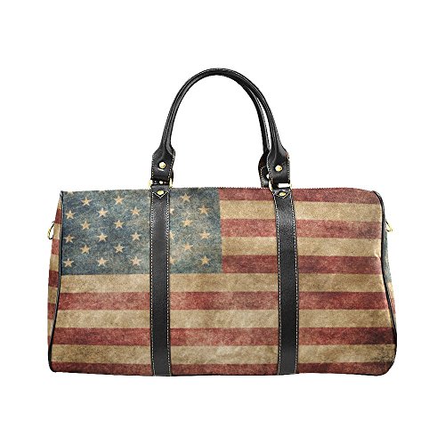 -. Title : Retro USA American Flag Travel Duffel Bag Waterproof Weekend Bag with Strap