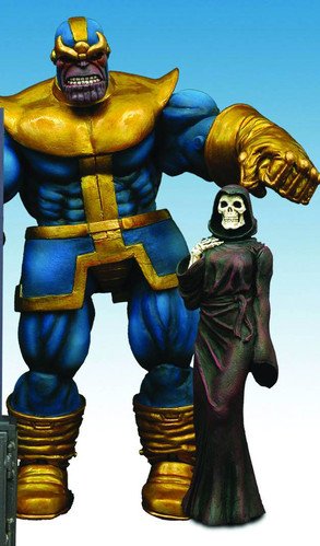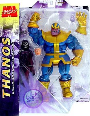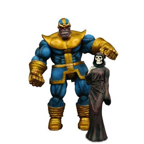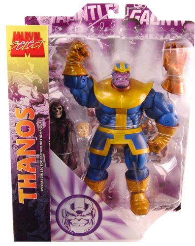 Studio : Diamond Select Toys Publisher : Diamond Select Toys Binding : Toy Product Description With the cosmically-charged Infinity Gauntlet in his grasp, Thanos nearly wiped out every living being in the universe... and would have succeeded if not for the intervention of some of the Marvel Universe's greatest heroes! With 14 points of articulation, the Thanos figure is a detailed representation of the villainous legend, complete with a removable "Infinity Gauntlet" and a scale unarticulated Death figure. Blister card packaging. 0