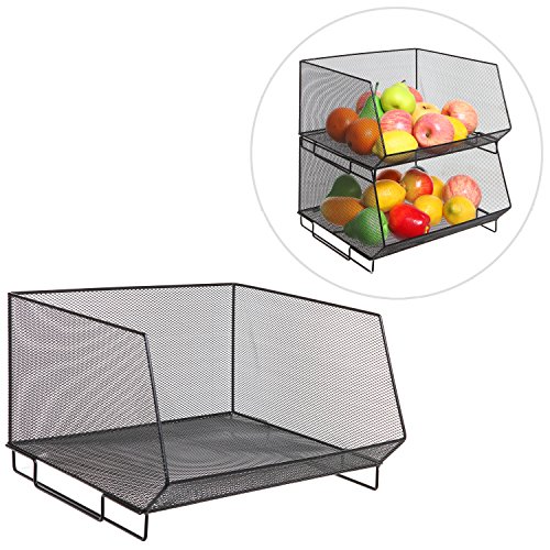 Organize your kitchen and store your fresh produce with this lovely stackable storage bin. The storage basket is made of sturdy metal wire mesh with sleek matte black finish, and it is ideal for storing and displaying everything from staple foods like apples or onions to other kitchen items like canned foods or bags of snacks. Place a single bin on your counter top or combine multiple sets to create a larger storage unit to organize your pantry. For a stylish and convenient storage solution for your kitchen, this counter top storage rack is the perfect choice.