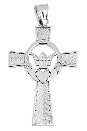 -. Title : 10k White Gold Irish Claddagh Celtic Cross Pendant