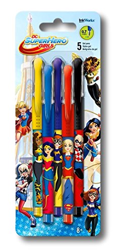 - Five Colored Gel Pens 0.7mm. Featuring Super Hero Girls.