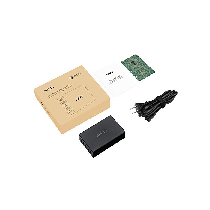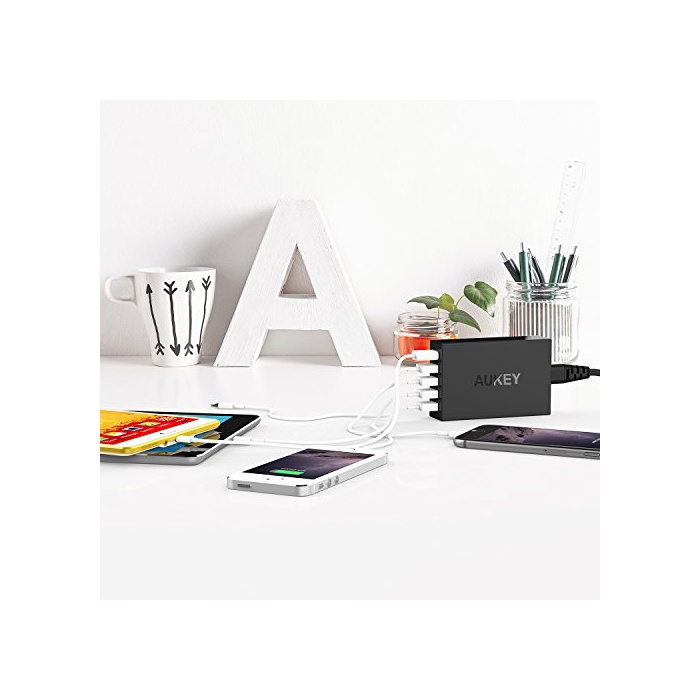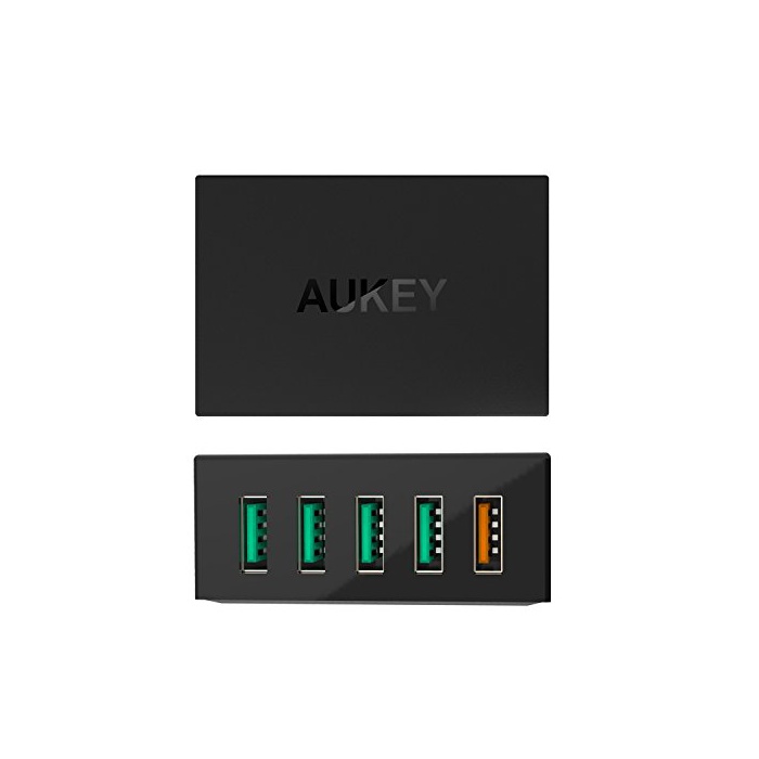 원본상품명: AUKEY USB充電器 ACアダプタ? Quick Charge 3.0 搭載 スマホ充電器 55.5W 5ポ?ト 5台同時充電 スマホ充電器 AC電源コ?ド付き USB急速充電可能 iPhone