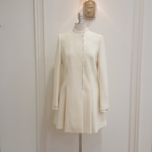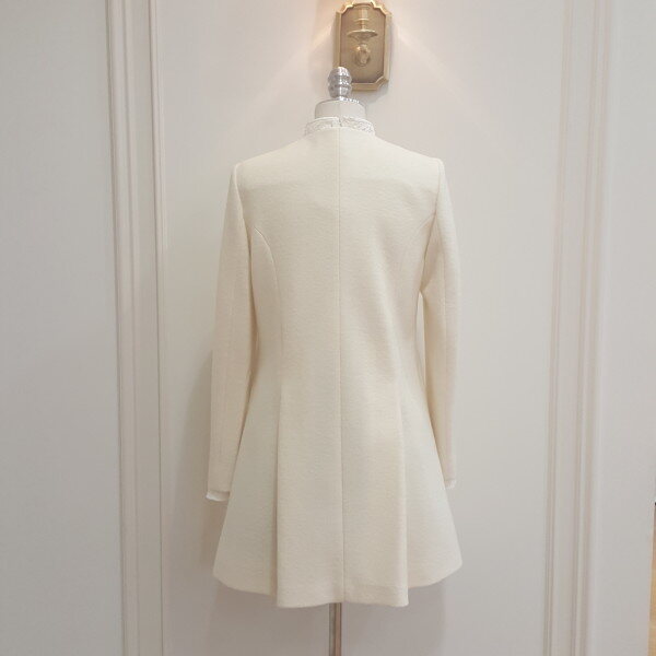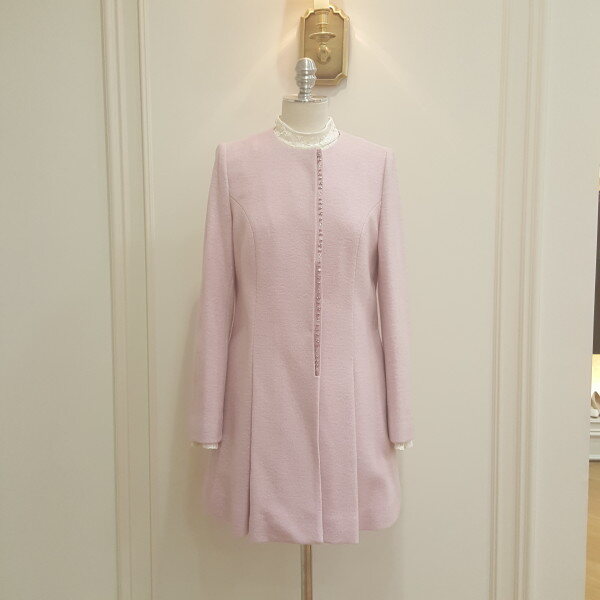 앞마이에 살짝 보이는 비딩 장식으로 포인트를 준 여성스런 느낌의 아우터