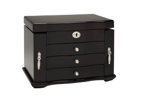 - Includes a lock and key for safekeeping all your jewelry. Lock feature secures only top and side doors, but not drawers.