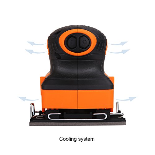 ▲EFFICIENT AND FAST CLAMPING SYSTEM - Soft grip body provides comfortable for prolonged sanding, and the switch would be locked after activated or closed to reduced the hand control; and fast clamping system for clamping the sandpaper strictly and protect the backing pad from being destroyed by pasted the sandpaper frequently as the common sander