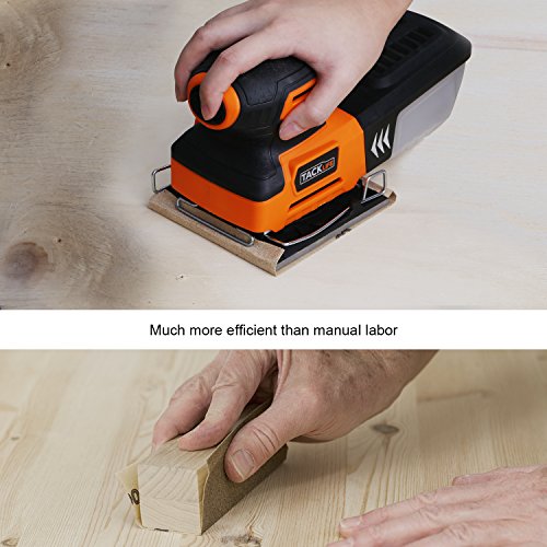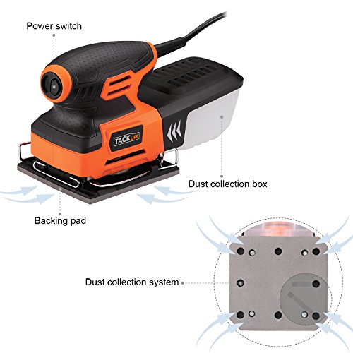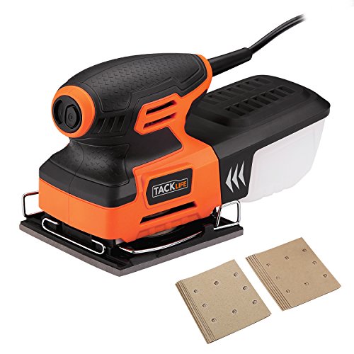 Tacklife PSS01A Classic Sheet Sander 2A 240W /15000 OPM with 12 pcs Sandpaper (6 Pcs X80 & 6Pcs x 180 Grits),Auto Filtered Dust Collection System For Home Decoration, DIY