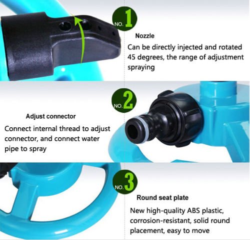 JOYOOO Three Arm Plastic Water Sprinkler 360 Degree Autorotation Garden Plant Yard Lawn Sprinklers