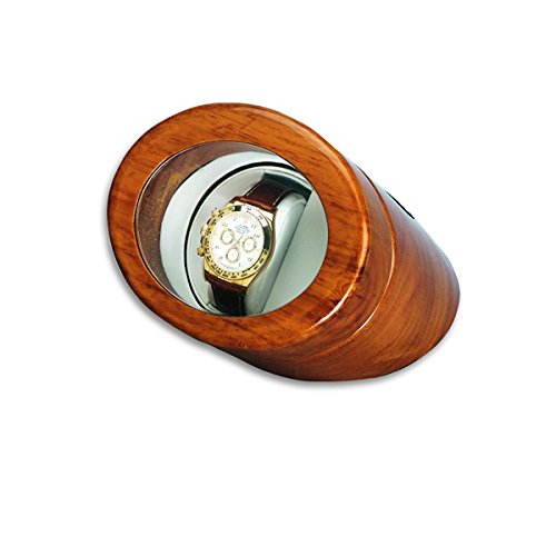 -. Title : Handsome Oak Wood Single Watch Winder in Brown High Gloss Round Collectors Watch Box