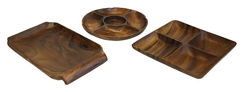 Studio : Mountain Woods Publisher : Mountain Woods Binding : Kitchen Product Description Serve your favorite appetizers and snacks in style with this 3 piece serving set handcrafted from solid acacia hardwood. This stylish serving tray set creates a handsome arrangement for serving delicious hors oeuvres, candy, and snacks. Serving tray measures 16"(long) by 10"(wide) by 1.5"(high), 5 compartment tray measures 12"(long) by 12"(wide) by 1.5"(high), 4 compartment tray measures 12"(long) by 12"(wide) by 1.5"(high). Care instructions: This product is not suitable for the dishwasher. To clean, simply wash in warm, soapy water and towel dry immediately. Do not allow wood products to soak in water. Rub with olive or vegetable oil to keep wood from drying out. 0