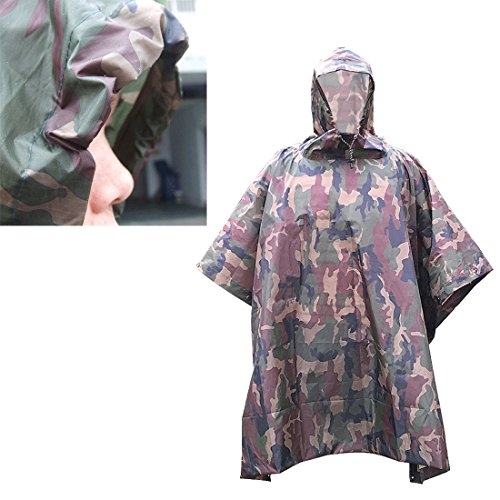 -. Title : Krayney Raincoat Military Poncho Ultra-Lite Ponchos Waterproof Ripstop Hooded US 210T Camouflage Rain Coat for Men Woman