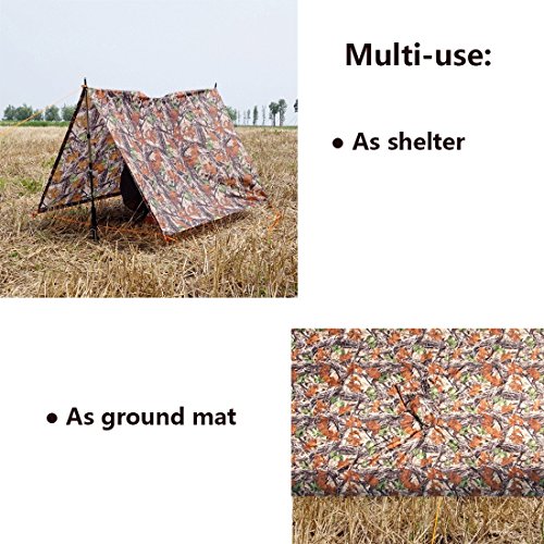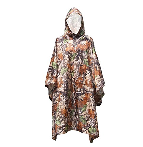 -. Feature : Extra Large Length: 83 inch. Width: 55 inch. / 210T Camouflage Rain Coat! One size fits all adults. / Ultralight Portable! Easy to carry. Come with a carry bag. / Protects you and your backpack from heavy wind and rain, easy towear raincoat. / Multifunction, Grommet Corners for use as Raincoat, Poncho, Shelter, Picnic mat Sunshade and a military poncho.
