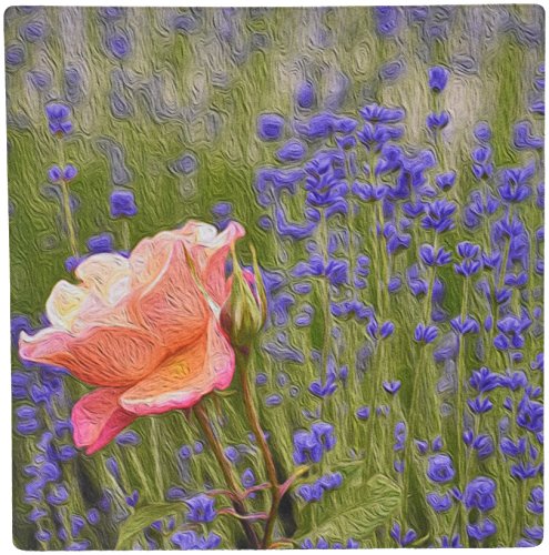 3dRose LLC 8 x 8 x 0.25 Painted Peach Rose and Lavender Flowers Floral Art Mouse Pad (mp_79361_1)