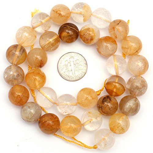 Natural Translucent Round Rutilated Quartz Gemstone Jewelry Making Yellow Brown Clear Loose Beads Strand 15" 0.472"