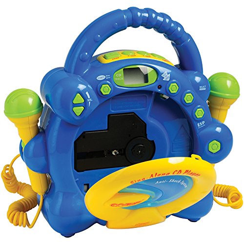 Does your child love music? Does he or she love to sing? Help them hit the high notes with this awesome sing-along CD player. Loaded with features and designed to function even during the slips and falls of a dancing sing-fest, the CP Toys Sing Along CD Player is a perfect choice. This product is loaded with features to provide supreme fun. It includes 45-second anti-skip protection, which helps keeps the tunes going through slips and falls, as well as a LCD display, a high output speaker, headphone jacks, a built-in pocket on the back to hold one CD, and 2 microphones that allow you and a friend to sing along to your favorite songs. The CP Toys Sing Along CD Player is perfect for a range of ages. With a volume control and headphone jacks, it is ready for little virtuosos and growing aficionados! Safe for ages 3 and up. Measures 9 1/2"W x 3 1/2"D x 10"H. Requires 4 C batteries (not included).Feature