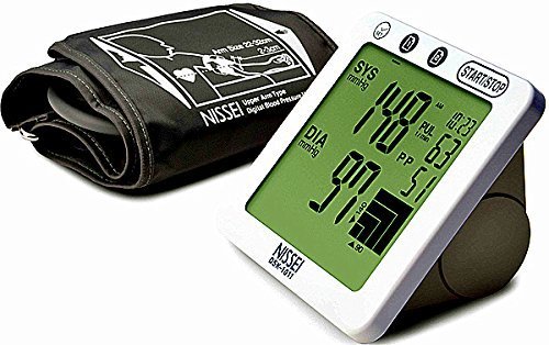 -. Binding : Health and Beauty -. Brand : Mark of Fitness -. EAN : 0757549010112 -. Feature : Touch-sensor, auto-inflate upper arm blood pressure monitor / Unique measurement on inflation results in gentle measurement and elimination of cuff inflation / Large LCD display with 2 memory banks that store 60 reading each and can provide average of all readings in storage / Body motion detector and irregular pulse rhythm indicator in the display panel improves accuracy and information / FDA approved and W.H.O classification and accuracy proven by the European society of hypertension requires 4 AA batteries (not included) -. IsAdultProduct : 0 -. Label : Mark of Fitness -. Manufacturer : Mark of Fitness -. Model : DSK-1011 -. MPN : DSK-1011 -. PackageQuantity : 1 -. PartNumber : DSK-1011 -. ProductGroup : Health and Beauty -. ProductTypeName : HEALTH_PERSONAL_CARE -. Publisher : Mark of Fitness -. ReleaseDate : 2015-06-22 -. Studio : Mark of Fitness -. Title : Nissei DSK-1011 Blood Pressure Monitor for Upper Arm -. UPC : 757549010112