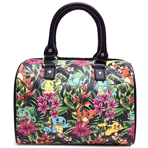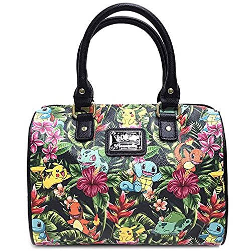 Binding : Apparel Product Description Travel with your favorite companions with our Pokemon Tropical Starter Duffle satchel bag from Loungefly. This fun tropical festival bags features full-all graphics Pokemon characters playing in rainforest printed on PU leather, logo plaque in front, dual carrying handles, removable shoulder strap, fully lined interior with back pockets, and top zip closure. 0