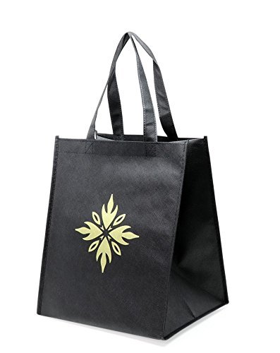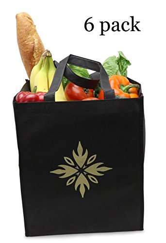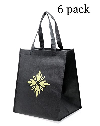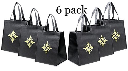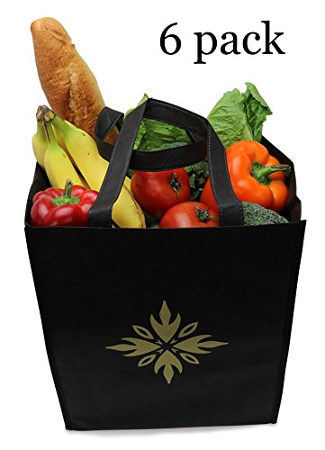 Reusable grocery bags-tote bags- premium quality- large- reinforced, Double-stitched handles-Black- pack of 6