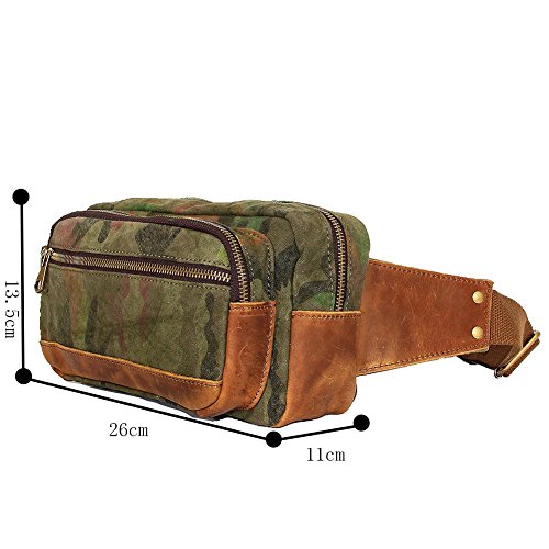 -. Feature : Size:26cm(L) x 11cm(W)x 13.5cm(H) / Material:Canvas and genuine leather / Very Portable and Convenient for Assorting Things. / Suitable for Outdoor Sports (Hiking, Camping, Climbing, Cycling, etc) and Travel Use. / Style:Canvas waist bag,fanny pack