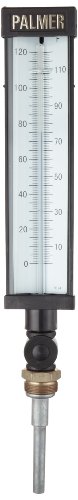 Palmer 9FLSB3.50/120F Plastic Economy Industrial Thermometer, Spirit Fill, 3.5" Stem, 9" Scale Case, 0-120 Degrees F Temperature Range