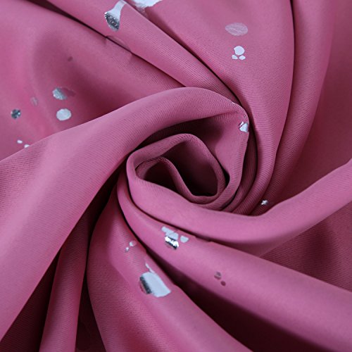 Deconovo SILVER Dots Foil Printed Blackout Curtains, brings a comfortable and lively atmosphere in your home. Neutral background color bring fabric an incredible beauty. These curatins are stylish and have a unique design. Made of 100% polyester, they are silky, soft, drapery and very pleasant to touch when compared to the other curtains. All seams are nice and straight, no loose threads. Floral patterns also have no visual defects. Overall, it makes the curtain hang nicely and gives an expensive look. They are durable, the fabric is not at all flimsy, and they are made to last for a long time! They are super easy to hang.