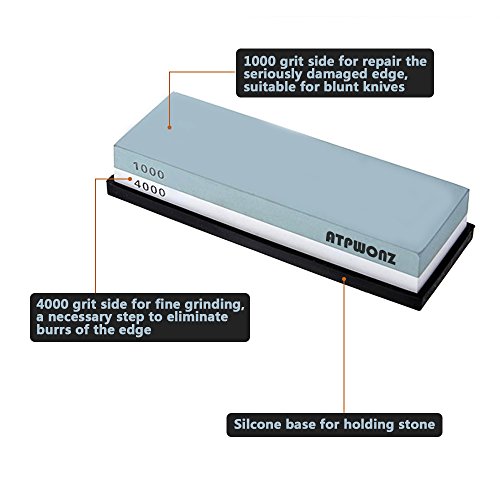 ATPWONZ Whetstone #1000/4000 Double-side Grit Sharpening Stone Japanese Knife Sharpener with Non-slip Rubber Base