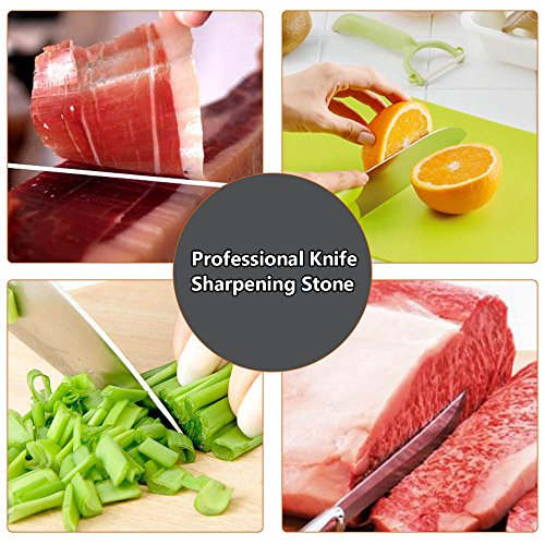- 【Premium Quality】The Whetstone is made of professional grade white corundum, thick and solid, corrosion resistant, can provide professional and effective protection for your knives (Kitchen Knives, Tactical knives, Hunting knives, Scissors, Razors, Swords, not not suitable for ceramic or serrated edge knives)